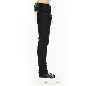 This black rocker slim style is crafted from a premium stretch denim then overlaid with a coating for a sleek finish. Finishing touches include; our signature back pocket flasher, draw cord keychain, and Cult signature XX on back leg.
